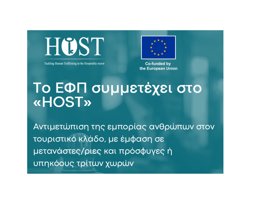 Το ΕΦΠ συμμετέχει στο «HOST» – Αντιμετώπιση της εμπορίας ανθρώπων στον Τουριστικό κλάδο, με έμφαση σε μετανάστες/ριες και πρόσφυγες ή υπηκόους τρίτων χωρών